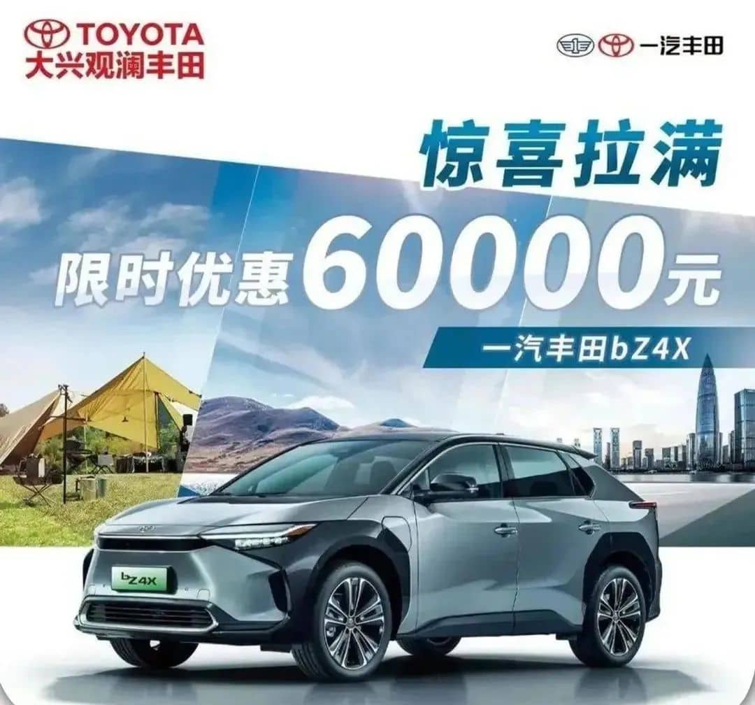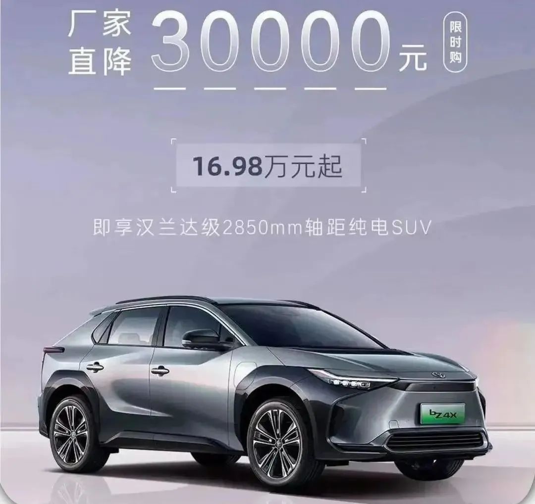 廣汽豐田:售價區間為19.98萬-28.78萬的 bZ4X限時優惠降價3萬元。