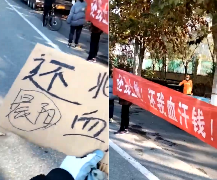 近三年來,債權人多次走上街頭拉起條幅,以期造成一定的影響力,把自己的“養老錢”要回來。