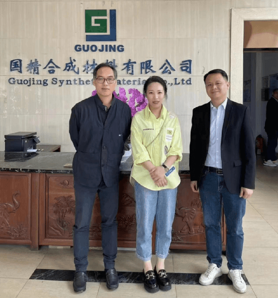 成都博高總經理麥朝忠(右)、銷售總監周志偉(左)與涂料采購網市場部經理劉桐(中)合影