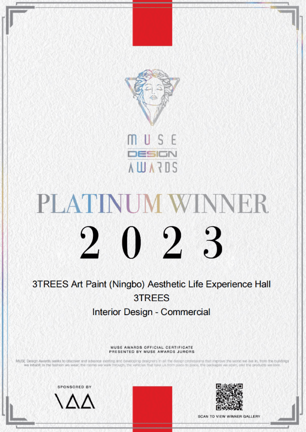 本次三棵樹藝術(shù)涂料4.0店態(tài)獲得MUSE設(shè)計(jì)獎(jiǎng)中來自全球多個(gè)國(guó)家專業(yè)評(píng)審的高度認(rèn)可和肯定,斬獲設(shè)計(jì)類最高的鉑金獎(jiǎng),充分顯示了三棵樹品牌在國(guó)際上的強(qiáng)大影響力。未來,三棵樹將繼續(xù)堅(jiān)守“讓家更健康,讓城市更美麗,讓生活更美好”的企業(yè)使命,研發(fā)更健康環(huán)保、更豐富多彩的藝術(shù)漆產(chǎn)品,提供更專業(yè)的一站式涂裝服務(wù),設(shè)計(jì)更有創(chuàng)意的藝術(shù)空間,滿足人們對(duì)美好生活的追求。