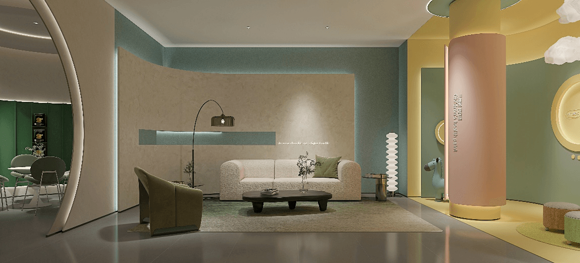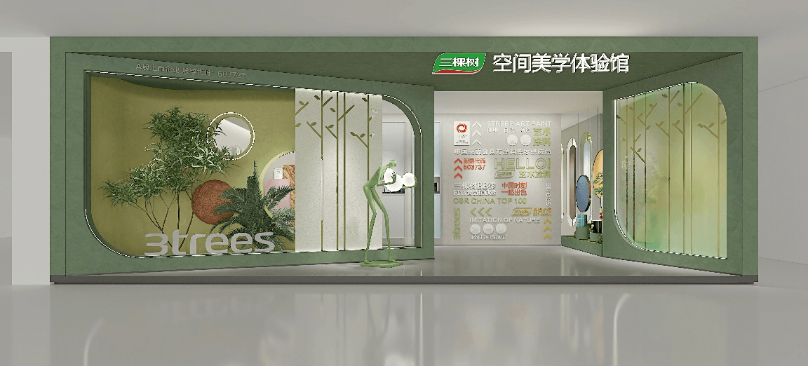 三棵樹(寧波)生活美學(xué)館屬于三棵樹藝術(shù)涂料全新升級(jí)的4.0店態(tài),以“漆彩藝術(shù),開啟美好生活”為設(shè)計(jì)主題,展館位于中國(guó)浙江省寧波市的國(guó)際裝飾現(xiàn)代城,展廳面積共380m²,全展區(qū)使用不銹鋼、藝術(shù)涂料、透光膜、發(fā)光陶瓷等環(huán)保藝術(shù)材料搭建,確保每一塊原材料、每一道建造工序的綠色環(huán)保。