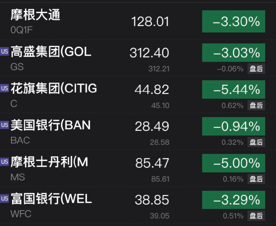 因各種利空消息的持續(xù)發(fā)酵,整個(gè)歐洲市場(chǎng)的銀行股嚴(yán)重受挫,法國(guó)興業(yè)銀行在歐洲市場(chǎng)大跌超12%,UniCredit裕信的歐股和美股均跌超9%,法國(guó)巴黎銀行大跌約10%,德國(guó)商業(yè)銀行、德意志銀行、荷蘭國(guó)際集團(tuán)、西班牙對(duì)外銀行均跌約9%。摩根大通大跌近5%,摩根士丹利、花旗銀行大跌5%,接近兩個(gè)半月最低。美國(guó)銀行收跌1%,富國(guó)銀行跌超3%。