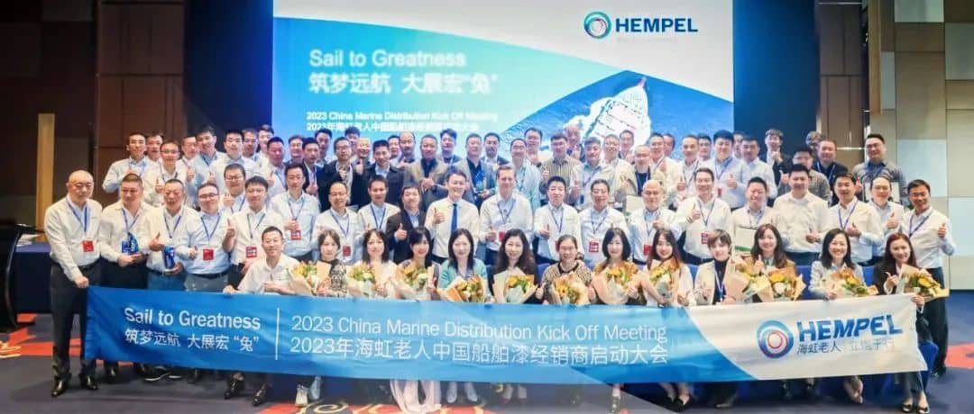 2023年海虹老人中國船舶漆經銷商啟動大會成功舉行,多家船舶漆經銷商代表與海虹老人管理層及各部門代表齊聚一堂。