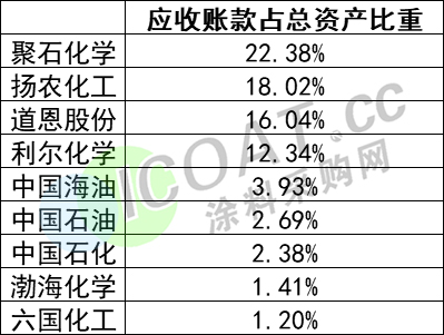 2022年部分化工企業(yè)應(yīng)收賬款占總資產(chǎn)比重
