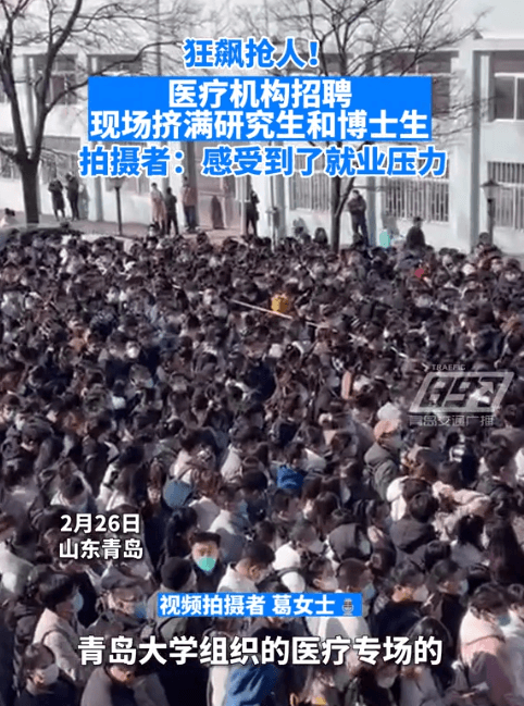 某醫療機構招聘,現場擠滿了高學歷的碩博求職人員,人流熙攘讓人看著都喘不過氣。