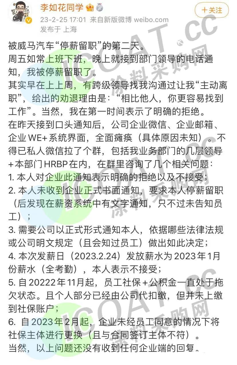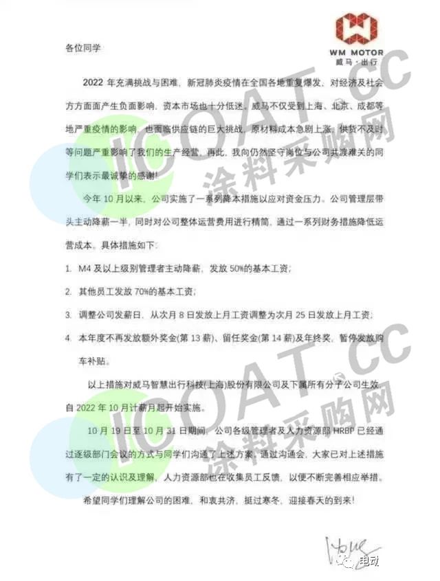 威馬汽車被爆出停工停產、欠薪裁員等情況后,又被曝出多地4S店關門。而后威馬汽車新增一則股權凍結信息,凍結股權數額約 40.4 億元人民幣,凍結期限自 2023 年 3 月 14 日至 2026年3月13日。而在此前,威馬汽車高管薪資縮減50%,普通員工薪資按照70%發放,連年終獎也被取消了。