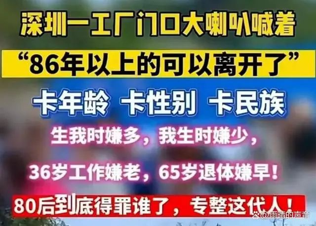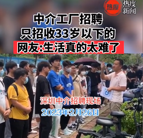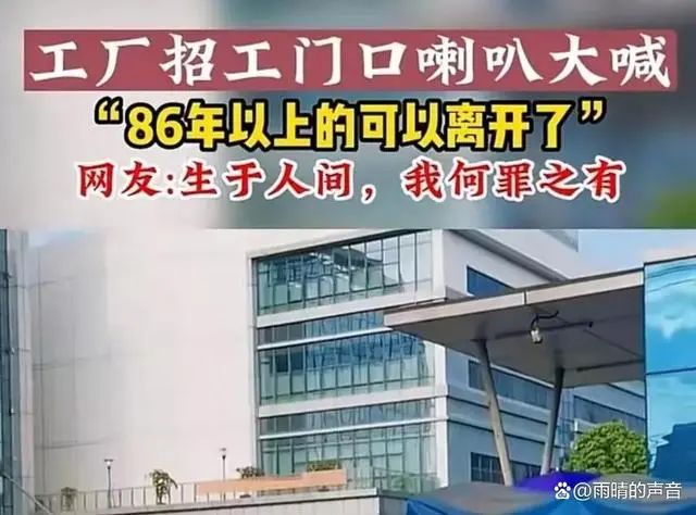 制造業工廠的冷淡也影響到了歷年春節后金三銀四的招工大戲,廣東深圳某工廠表示招工不招86年以上(1986年以前出生)的員工,門口還用大喇叭高喊著“86年以上的可以離開了,不用排隊了”。