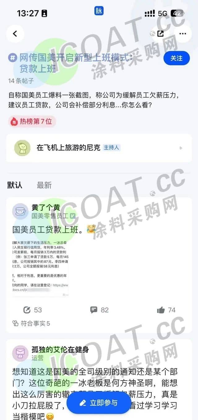 更有大招頻頻祭出!網傳國美開啟新型上班模式:為緩解員工欠薪壓力,建議員工貸款,公司會補償部分利息。