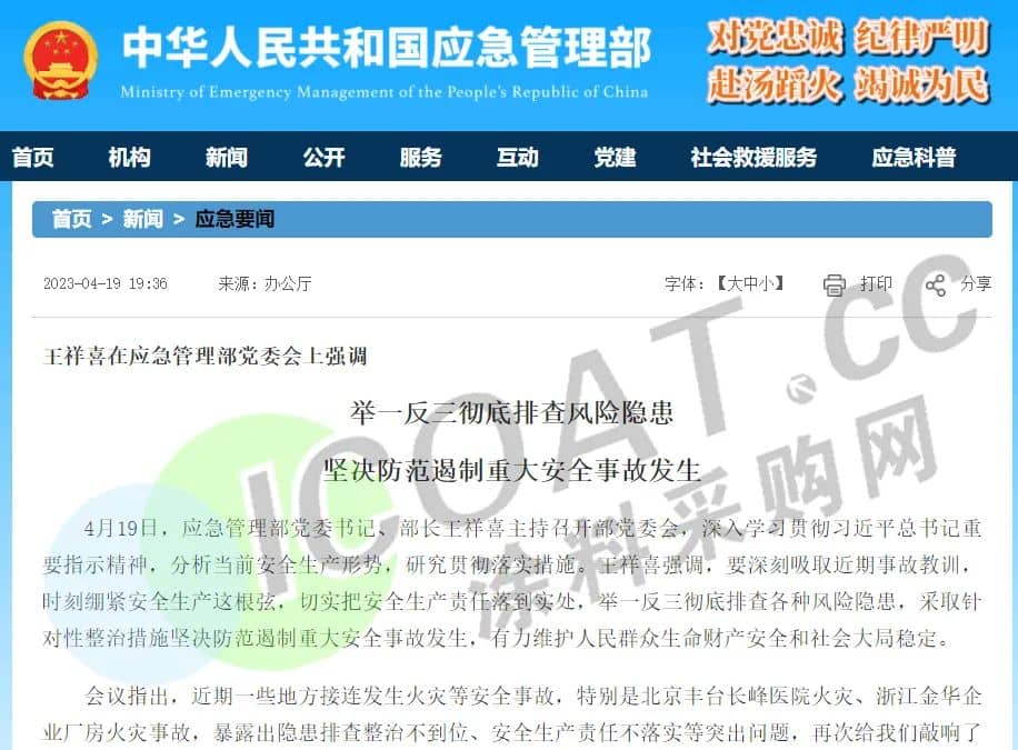 近日,北京長峰醫院重大火災事故引發大眾關注,目前事故已造成29人死亡,在院治療傷病員39人。應急管理部黨委書記、部長王祥喜強調,要聚焦突出問題,迅速開展消防安全專項整治和尾礦庫汛前隱患排查治理。將醫院、養老院、學校、托兒所、“廠中廠”、娛樂場所、高層建筑、大型綜合體等作為重中之重,聚焦易燃可燃裝飾裝修、保溫材料和占堵生命通道、違規動火動焊作業、冒險施工等突出風險,以及小施工引起大事故等突出問題,采取集中檢查、專家會診、異地執法等形式,一家一家過“篩子”,對隱患問題該通報的通報、該曝光的曝光、該約談的約談。