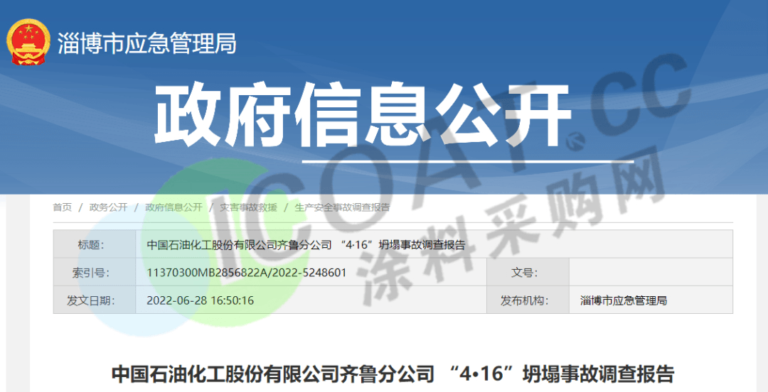 2022年4月16日,中國石油化工股份有限公司齊魯分公司煉油廠發生一起坍塌事故,造成1人死亡,直接經濟損失180萬元。
