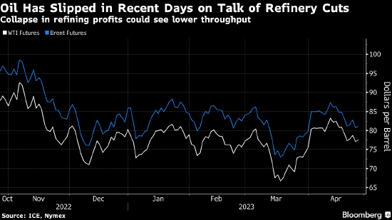 據(jù)涂料采購網(wǎng)了解,近日布倫特原油跌破每桶79.77美元,重回OPEC+宣布減產(chǎn)前一天的收盤水平,已完全抹去4月初OPEC+意外宣布減產(chǎn)以來所取得的漲幅。