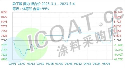 魯西化工的事故對于異丁醛及下游產(chǎn)業(yè)鏈也造成了一定的供給焦慮。5月4日國內(nèi)異丁醛市場價格大幅上漲,日漲666.67元/噸,漲幅8.91%。部分廠家停車檢修,異丁醛供應(yīng)趨緊,現(xiàn)貨流通緊張,大廠上調(diào)報價。