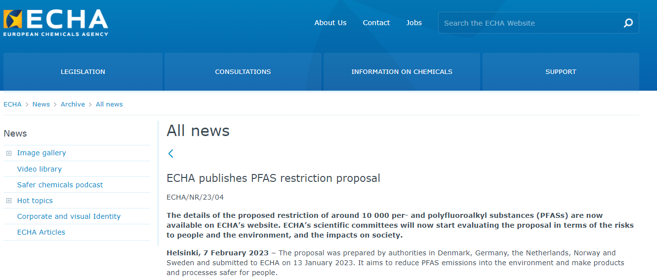 來自德國、荷蘭、丹麥、瑞典和挪威五個歐盟國家的多個歐洲當局評估了有關PFAS的所有科學知識,并匯編了這些物質當前的用途,有意限制PFAS。