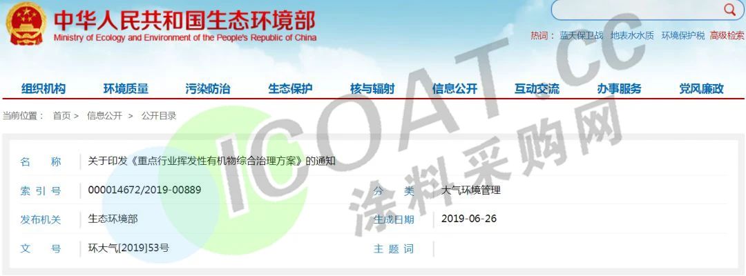 2019年6月,生態環境部發布關于印發《重點行業揮發性有機物綜合治理方案》的通知,要求到2020年,建立健全VOCs污染防治管理體系,重點區域、重點行業VOCs治理取得明顯成效,完成“十三五”規劃確定的VOCs排放量下降10%的目標任務。
