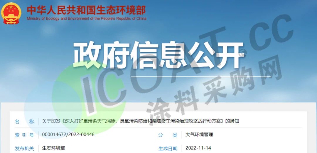 2022年11月,生態環境部、國家發展和改革委員會等15部門印發的《深入打好重污染天氣消除、臭氧污染防治和柴油貨車污染治理攻堅戰行動方案》指出,要強化揮發性有機物(VOCs)、氮氧化物等多污染物協同減排,以石化、化工、涂裝等為重點,加強VOCs源頭、過程、末端全流程治理。各地對溶劑型涂料、油墨、膠粘劑、清洗劑使用企業制定低VOCs含量原輔材料替代計劃。