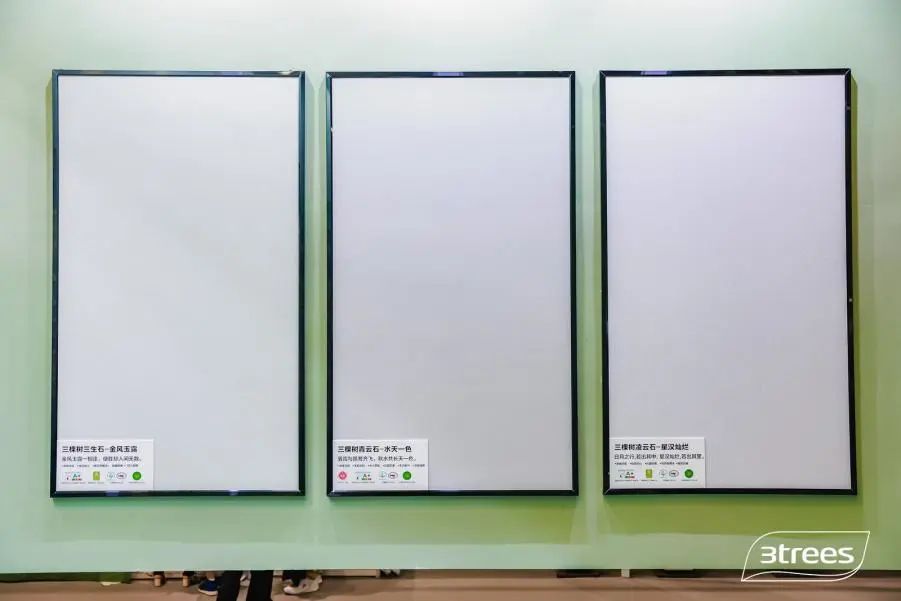 被譽為“極致健康的藝術漆”的三棵樹藝術漆,重點新品“三石系列”藝術漆也現身設計上海展臺之中。“三石系列”分別指三棵樹青云石、三棵樹三生石、三棵樹凌云石,在打造不同藝術氛圍的同時,分別實現凈味、防火、抗菌、耐用等不同卓越功能點,擁有強大環保和功能性基因,讓美學與實用達到平衡。