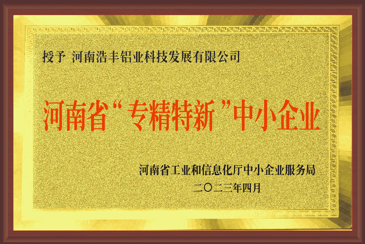 近日,河南省工信廳公布2023年度第一批河南省專精特新中小企業(yè)名單,以河南浩豐鋁業(yè)科技發(fā)展有限公司(以下簡稱“浩豐鋁業(yè)”)為代表的一批專精特新企業(yè)成功入圍。