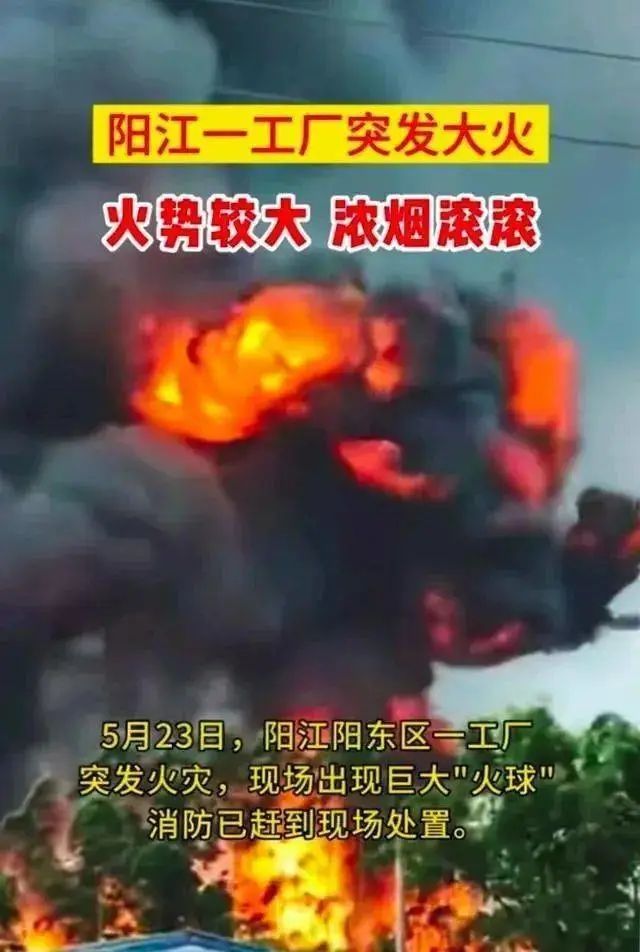 5月23日,廣東陽江市陽東區北慣鎮一噴漆廠發生大火并伴發爆炸?,F場巨大“蘑菇云”“火球”噴涌,附近消防救援迅速趕赴撲滅。
