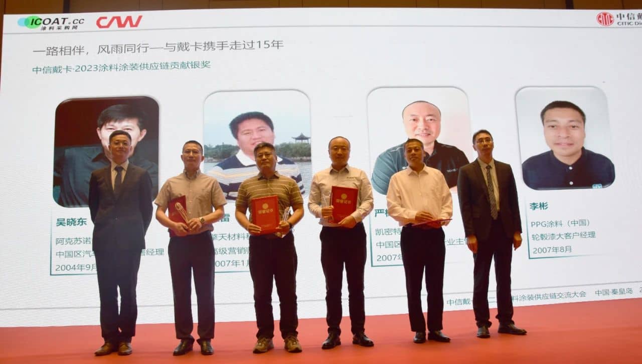 隨后,中信戴卡為攜手走過15年、25年的供應(yīng)商頒發(fā)貢獻銀獎、貢獻金獎,阿克蘇諾貝爾、擎天材料、PPG、凱密特爾等企業(yè)獲此殊榮。中信戴卡表示,與中國合作伙伴的共同努力,帶來了國際化視野和能力的提升,未來全球的戴卡商業(yè)對接都將安排在本部,供應(yīng)鏈定價將持續(xù)穩(wěn)定狀態(tài),并依托資源自主開展研發(fā)。