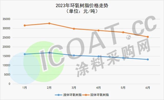近日,環氧樹脂價格下跌持續下滑,液體環氧樹脂報價13150元/噸左右,固體環氧樹脂報價12200元/噸左右,較2023年年初價格下跌近20%。