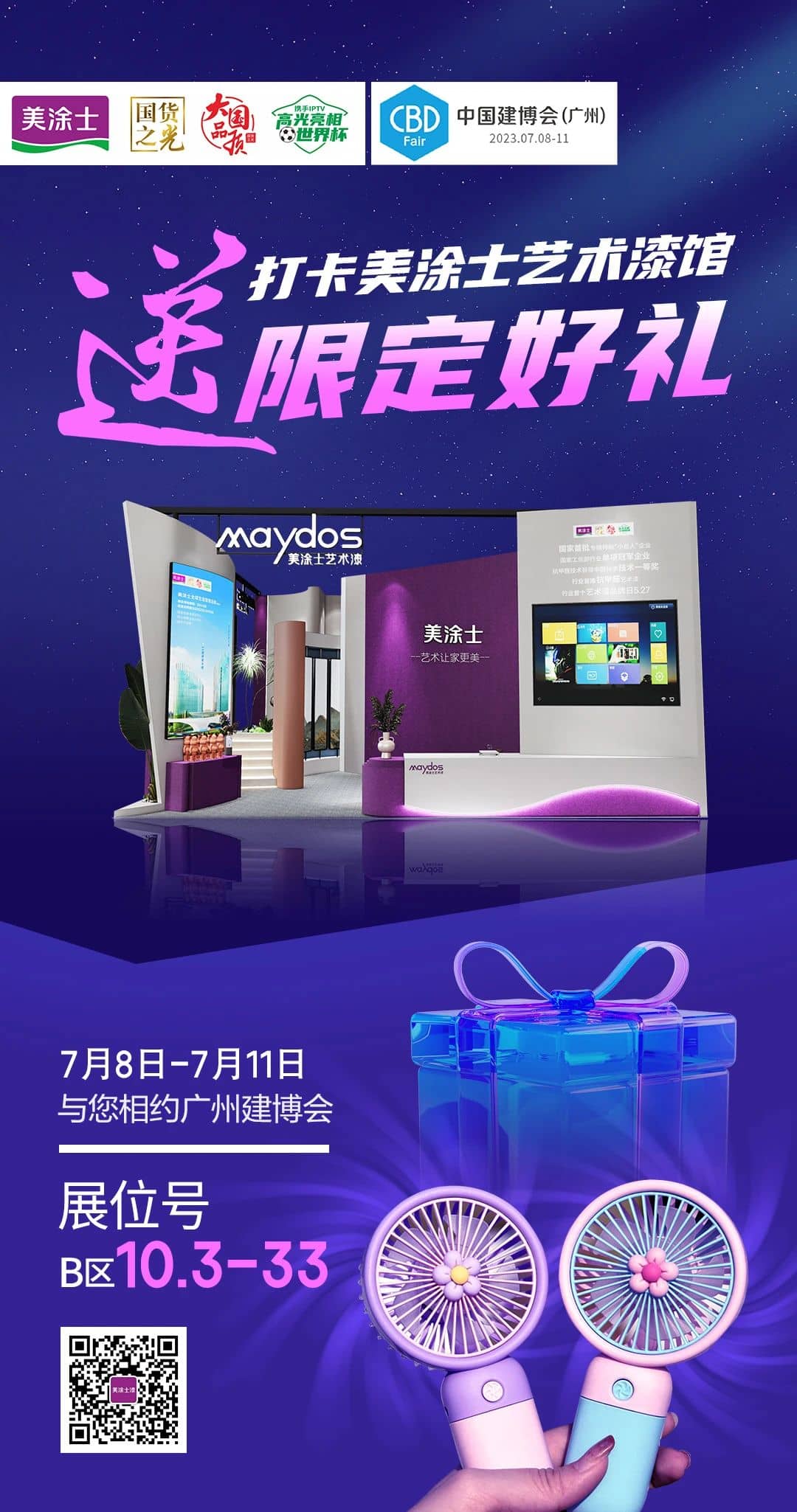 抓住風(fēng)口,鎖定先機(jī)。7月8日至7月11日2023中國(guó)建博會(huì)(廣州),美涂士誠(chéng)邀全國(guó)各地的朋友蒞臨廣州廣交會(huì)展館B區(qū)藝術(shù)涂裝館10.3-33展位,一起探討行業(yè)趨勢(shì),解鎖財(cái)富密碼,共創(chuàng)美好未來。