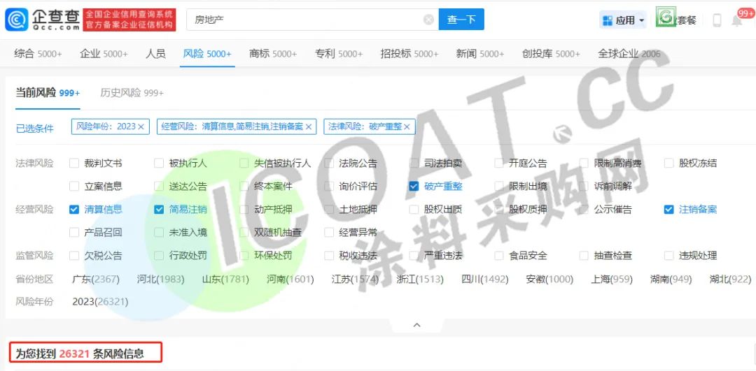 房地產行業:破產、清算、注銷26321家,包括房地產經紀、房地產開發、房地產營銷策劃等細分領域。