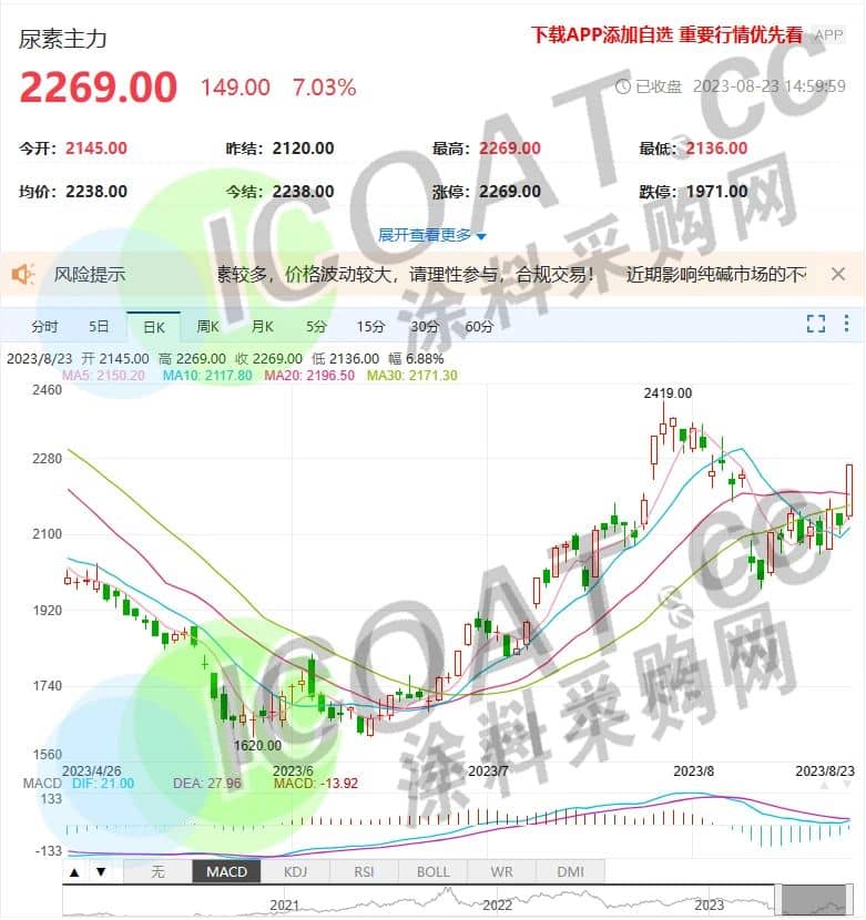 山西地區(qū)是除內(nèi)蒙古以外國(guó)內(nèi)尿素產(chǎn)量最大的地區(qū),其尿素年產(chǎn)能為867萬噸,約占尿素總產(chǎn)能的12%,其中晉城尿素年產(chǎn)能占山西的65%。受供應(yīng)端消息提振,尿素期貨強(qiáng)勢(shì)上漲。截至23日下午收盤,尿素期貨2310、2311、2312、2401和2402合約均觸及漲停,尿素主力合約漲7.03%至2269元/噸。