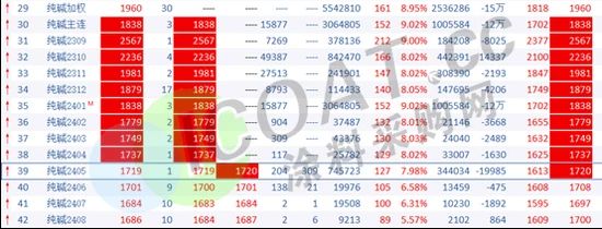 近日安徽德邦化工廠爆炸、金山集團(tuán)200萬噸新產(chǎn)能產(chǎn)成品不合格、昆侖發(fā)投因環(huán)保停機(jī)等消息不停吊緊市場(chǎng)神經(jīng)。檢修季疊加剛需去庫市場(chǎng)流動(dòng)堿有限,市場(chǎng)出現(xiàn)買不到堿的無堿局面。自6月1日至8月21日,純堿期貨2401合約57個(gè)交易日漲幅達(dá)34.57%。截至8月22日,共有8張合約漲停,包括馬上臨近交割的2309以及較遠(yuǎn)的2404合約。