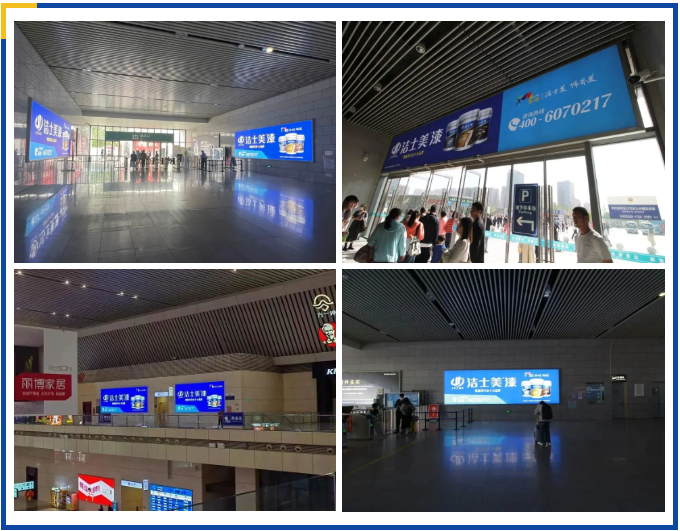 除了布局線下的家裝經銷渠道,潔士美總部還在城市廣告上提供品牌曝光,無論是高鐵站廣告,還是線上媒體引流,在品牌曝光上給予充足流量展現。