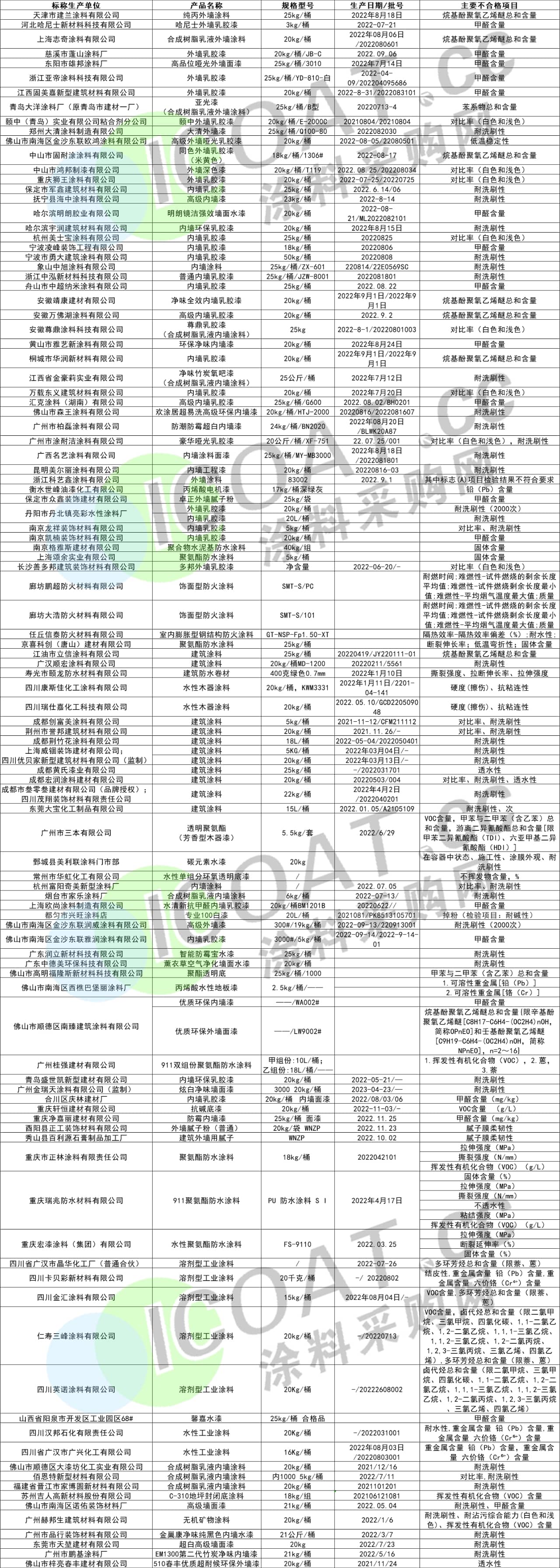 2023年以來部分涂料企業不合格名錄