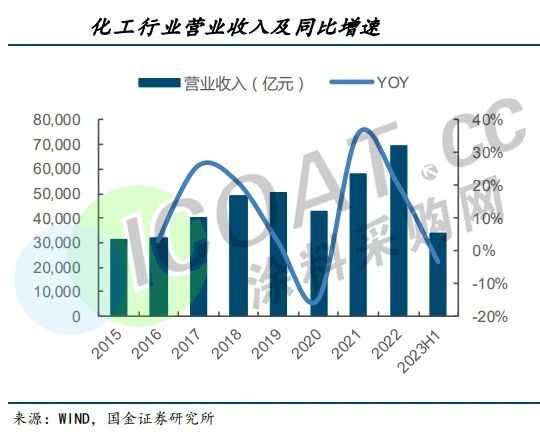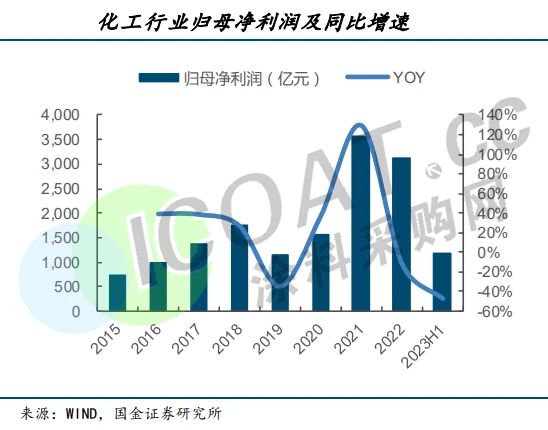 2023 年上半年申萬化工行業整體實現營業收入 3.35 萬億元,同比下降 3.3%;歸母凈利潤 1164 億元,同比下滑 47.5%。
