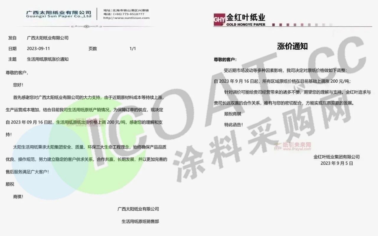 臺市新錦紙業、棗莊市恒宇紙業、浙江華天再生資源、江蘇富星紙業、 山東豐源中盛紙業、江蘇金田紙業、山東豐碩紙業、浙江明路控股集團、河南匯祥再生資源科技、四川華僑鳳凰紙業等宣布產品每噸上調50元。