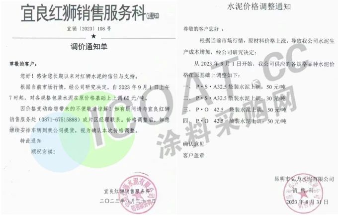 水泥:9月份多地水泥價格上漲10-65元/噸
