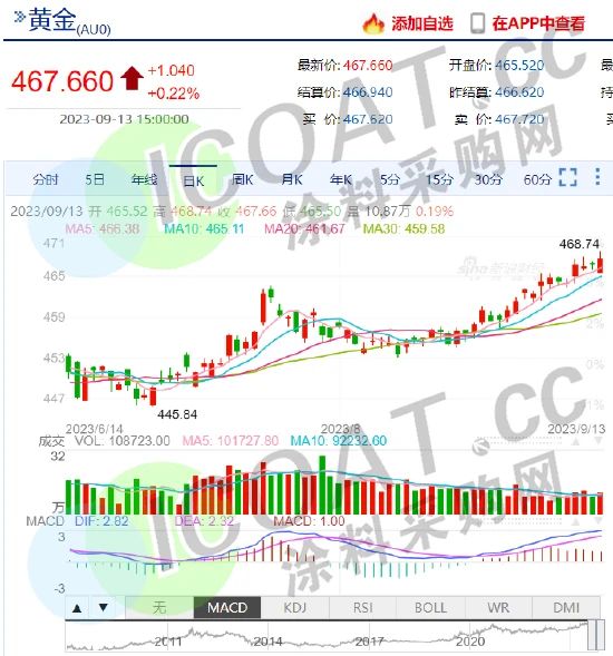 近日,黃金漲價新聞頻頻沖上熱搜。飾品黃金報價已經達到610元/克,創下階段性新高。雖然各家基本都有優惠,但是優惠過后的價格也普遍接近600元/克,短期內飾品黃金漲價明顯。9月13日,上期所黃金期貨再次創下上市15年以來的新高,一度逼近470元/克。