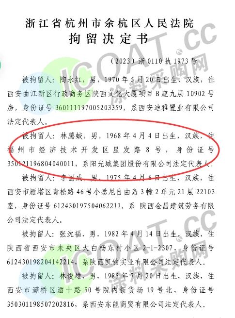 陽光城因一起票據(jù)追索權(quán)糾紛案,拒不申報財產(chǎn),公司法定代表人林騰蛟被采取拘留15日。因為這個案件,林騰蛟也領(lǐng)到了余杭區(qū)法院的《限制消費令》,限制飛機、列車軟臥、輪船二等以上艙位。