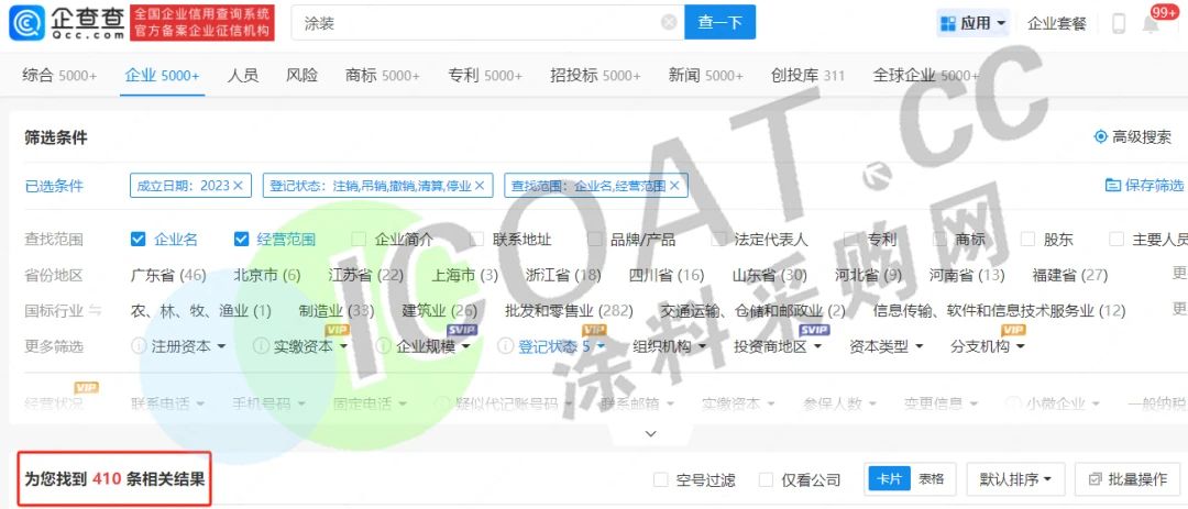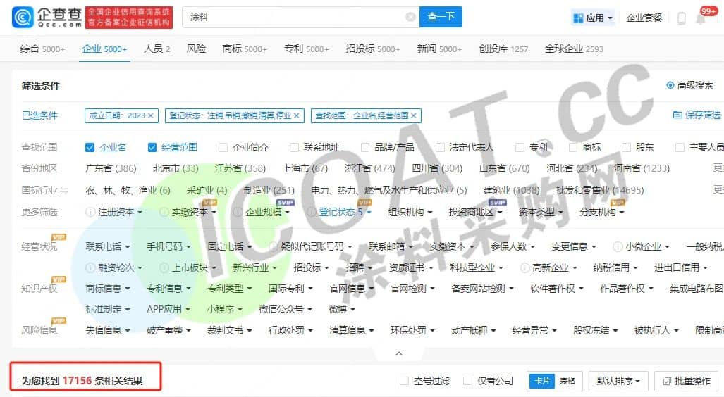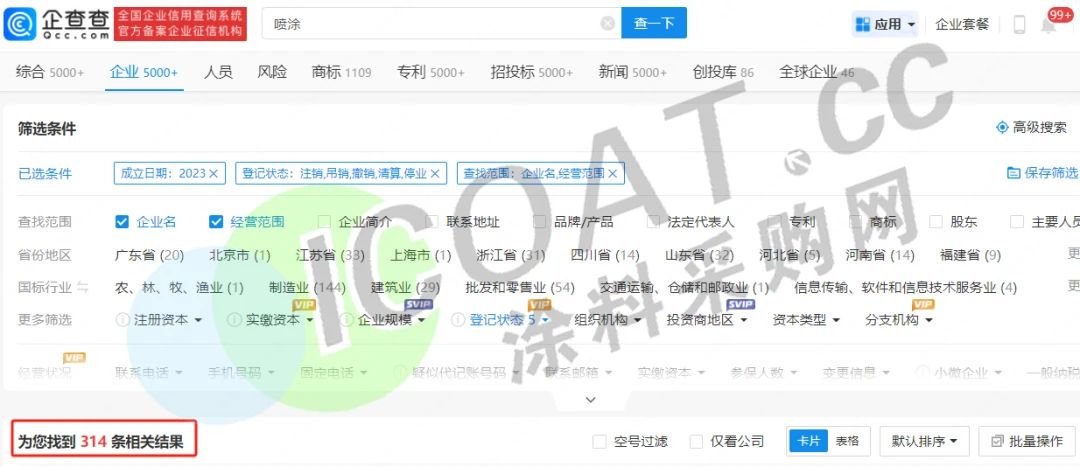 涂裝公司方面。2023年成立,并于當(dāng)年內(nèi)經(jīng)營范圍變更為注銷/吊銷/撤銷/清算/停業(yè)的企業(yè)400多家,經(jīng)營范圍包括船舶、家具、設(shè)備、機械、汽車等行業(yè)的涂裝等。