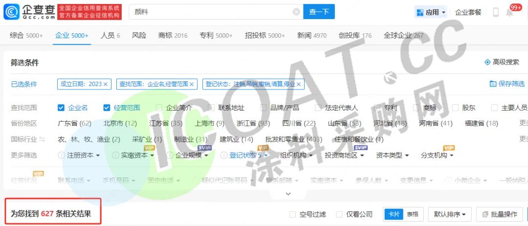 顏料行業(yè),2023年成立,并于當(dāng)年內(nèi)經(jīng)營范圍變更為注銷/吊銷/撤銷/清算/停業(yè)的企業(yè)620多家,企業(yè)主要在廣東、江蘇、四川、山東、河北等地區(qū)。
