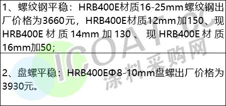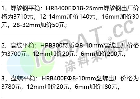 首鋼水鋼建材出廠價格自10月13日起調整: