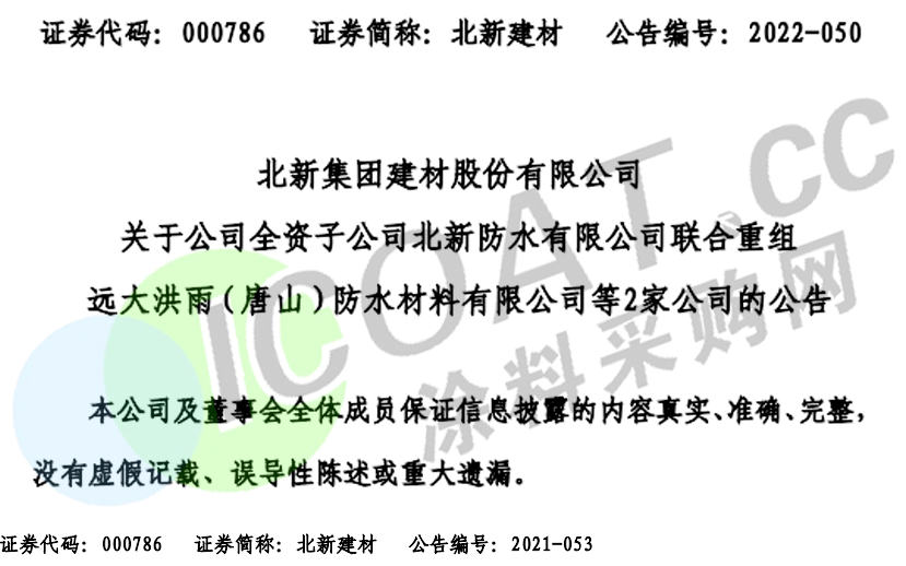 2022年4月30日,北新建材全資子公司北新防水以52,784.84萬元的價(jià)格受讓唐山遠(yuǎn)大洪雨63.28%股權(quán),以7,214.49萬元的價(jià)格受讓宿州遠(yuǎn)大洪雨70%股權(quán)。