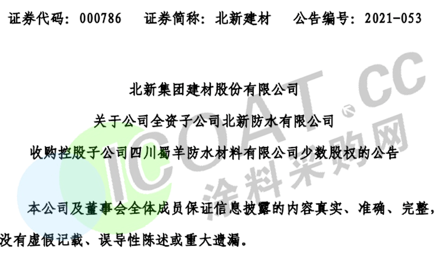 2021年9月25日,北新防水?dāng)M以23,085.00萬元收購四川蜀羊的剩余30%股權(quán)。