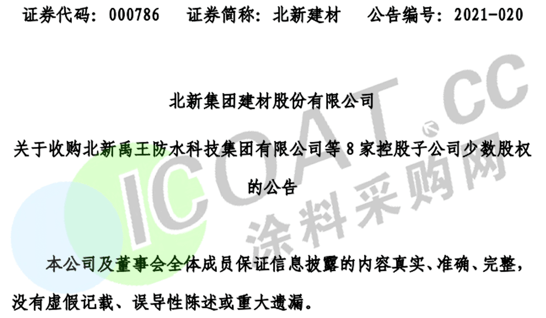 2021年3月31日,北新建材擬收購禹王系公司的剩余30%股權(quán)。本次收購?fù)瓿珊?,公司將持有禹王系公?00%股權(quán),禹王系公司將成為公司的全資子公司。而在2019年10月,北新建材分別收購了禹王防水、四川禹王、安徽禹王、湖北禹王、廣東禹王、禹王工程、禹王橡膠、禹王化纖8家禹王系公司的70%股權(quán),估算合計(jì)成交額近7.7億元。