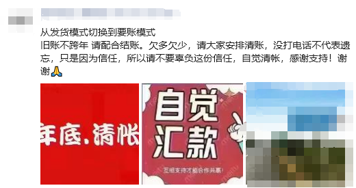 近日,某化工某原材料企業(yè)表示,從發(fā)貨模式切換到要賬模式。舊賬不跨年,請配合結(jié)賬。欠多欠少,請大家安排清賬,沒打電話不代表遺忘,只是因?yàn)樾湃危哉埐灰钾?fù)這份信任,自覺清賬,感謝支持。