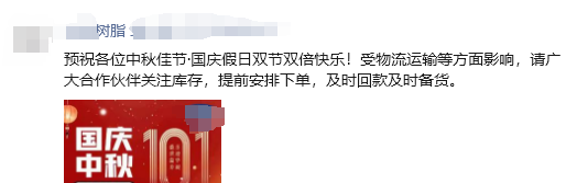 更有多家涂料及化工企業(yè)在十一假期前,就借著物流運(yùn)輸不便等理由,提醒客戶關(guān)注庫存提前下單,順便暗示對方及時(shí)回款。