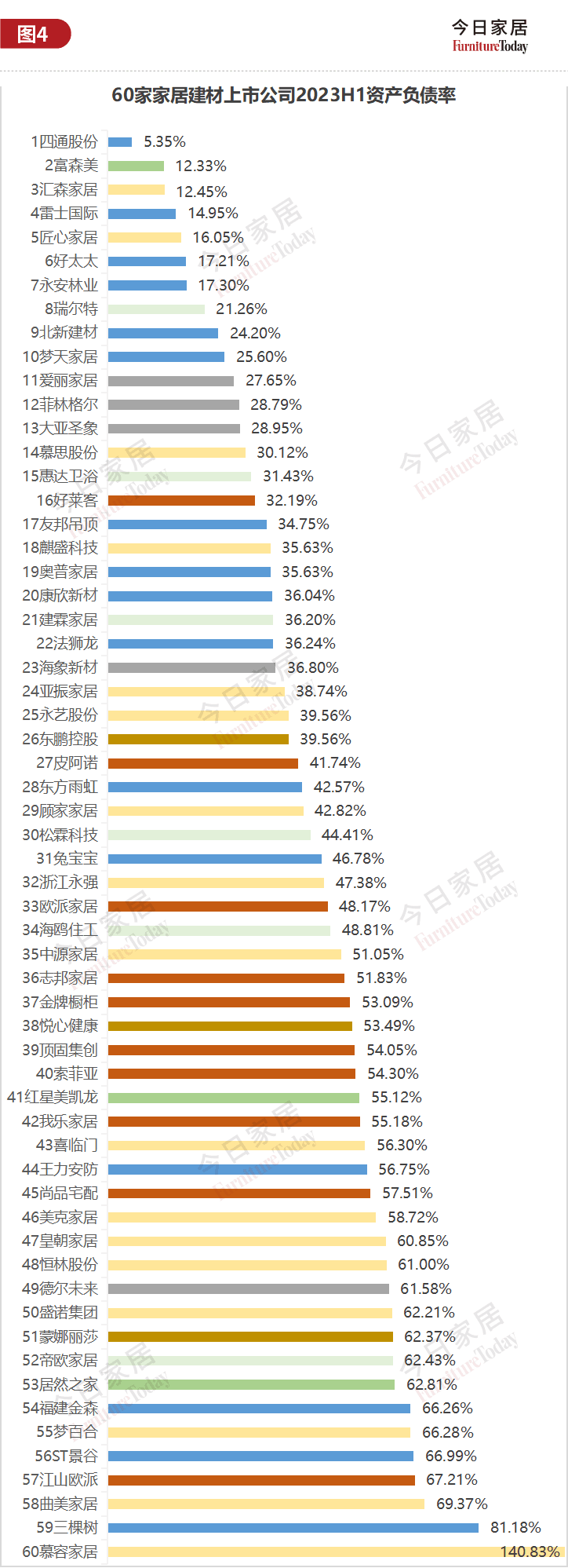 而與房產(chǎn)相關(guān)的60家上市家居企業(yè)的2023年一季度財(cái)報(bào)中,資產(chǎn)負(fù)債率的數(shù)據(jù)也頗為嚴(yán)重。僅13家企業(yè)在30%以下,45家企業(yè)在30%-70%之間,另有2家企業(yè)超過70%。過高的資產(chǎn)負(fù)債率意味著企業(yè)負(fù)債方面不太樂觀,借債較多,自身風(fēng)險(xiǎn)較大。不難想象,如果這些企業(yè)的應(yīng)收賬款難以收回,那么他們的資金鏈斷裂之際,也無法償還其他企業(yè)的債務(wù),形成可怕的“三角債”、或者“多角債”。