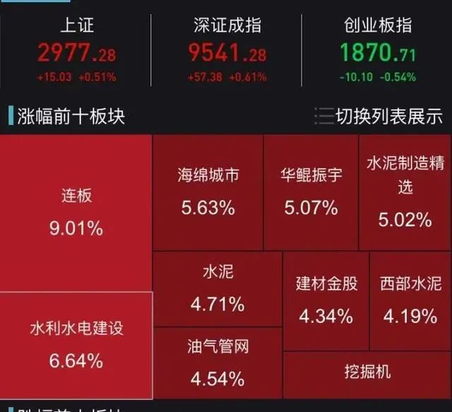 大基建板塊全面爆發(fā),水利建設(shè)、建筑材料、水泥、鋼鐵、裝配式建筑、污水處理、民爆、工程咨詢等板塊紛紛起舞,板塊內(nèi)深水規(guī)院、巴安水務(wù)、冀東水泥、新興鑄管等多股漲停。
