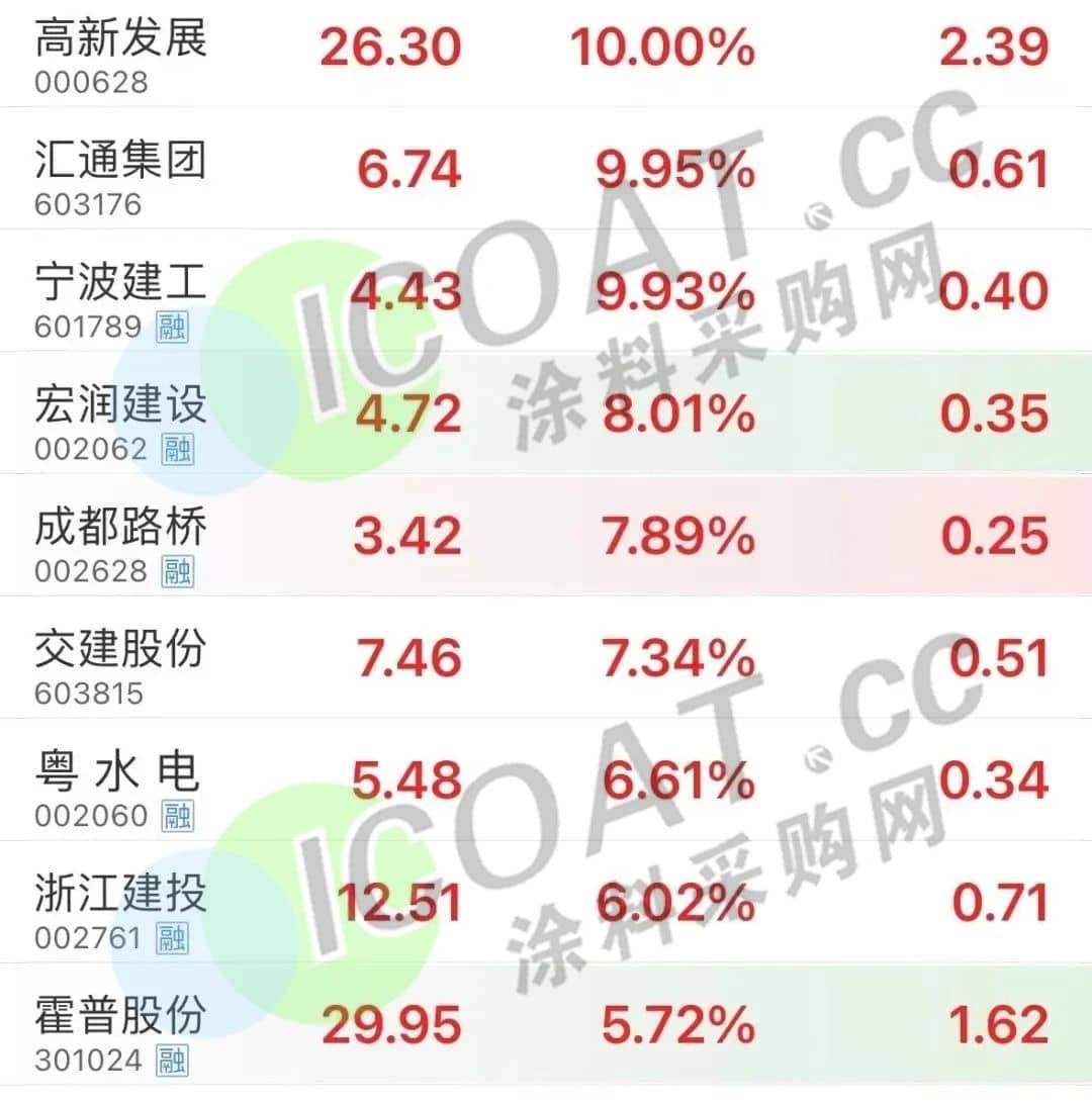 災(zāi)后重建方面就更不必說(shuō)了,無(wú)論是建筑內(nèi)外墻涂料,還是防水材料,密封膠、膠粘劑等多個(gè)行業(yè)領(lǐng)域都會(huì)被用到,“防水茅”東方雨虹,央企背景的北新建材、科順股份、凱倫股份、保溫材料行業(yè)的亞士,以及門(mén)窗、瓷妝、潔具等建材產(chǎn)品都是必備的。