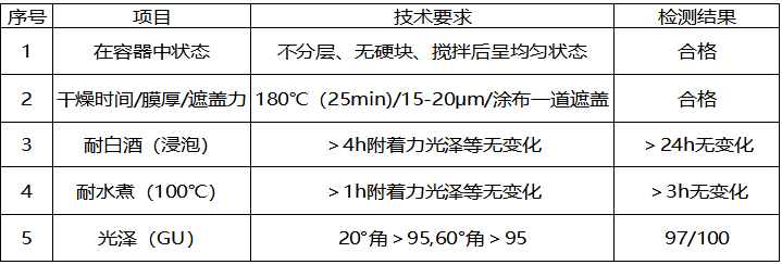在干燥速度方面,烤漆相對于其他水性同類產品也有明顯優勢;涂膜耐醇、耐堿、耐水煮、硬度性能測試滿足水性玻璃酒瓶涂料要求;可使漆膜的硬度、附著力、耐水性、耐鹽霧性、貯存穩定性等綜合性能優異。