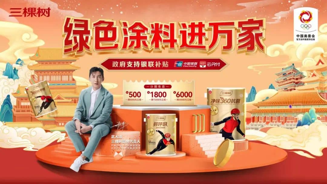 除此之外,三棵樹為真正全面讓利消費者,以最高的性價比助力打造綠色健康人居,與中國銀聯共同推出的滿額立減活動。即使用銀聯云閃付APP進行支付,即可享受500元、1800元、6000元的滿額立減活動,同時還推出了惠民套餐與立減優惠均能夠疊加使用。在“天天雙十一”活動中,三棵樹還將繼續攜手銀聯,以大額補貼讓利消費者。三棵樹開展鉅惠補貼行動的初心,也是長期以消費者為中心,切實希望助力國人打造健康中國家,積極推動健康戰略的迭代創新與綠色家居行業轉型升級,讓綠色的涂料走進千萬家,讓更多的國人用上健康中國漆。