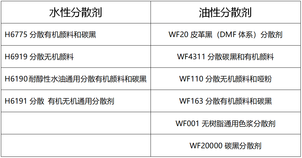 在30多年的發展過程中,浙江映美新材料只做一件事,那就是不斷加強技術研發,不斷提升企業的軟實力,給客戶提供色彩和顏料分散解決方案,讓客戶更有競爭力。據悉浙江映美新材料生產部分的分散劑如下: