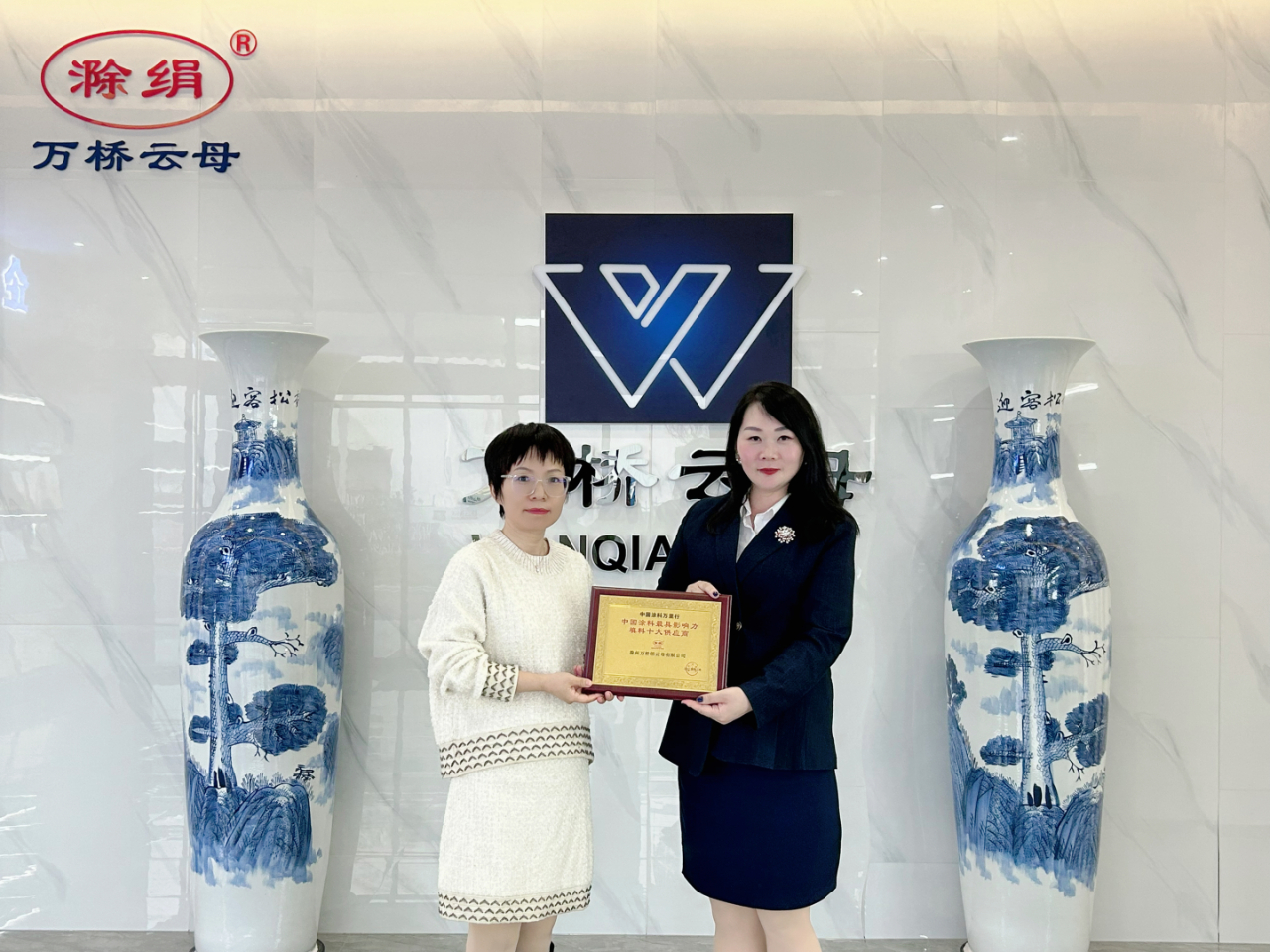 近日,滁州萬橋絹云母有限公司(以下簡稱“萬橋云母”)獲稱“中國涂料最具影響力十大供應商”,涂料采購網江雪走進萬橋云母為其頒發獎項,并與萬橋云母總經理董善玲董總展開了深入的交流。